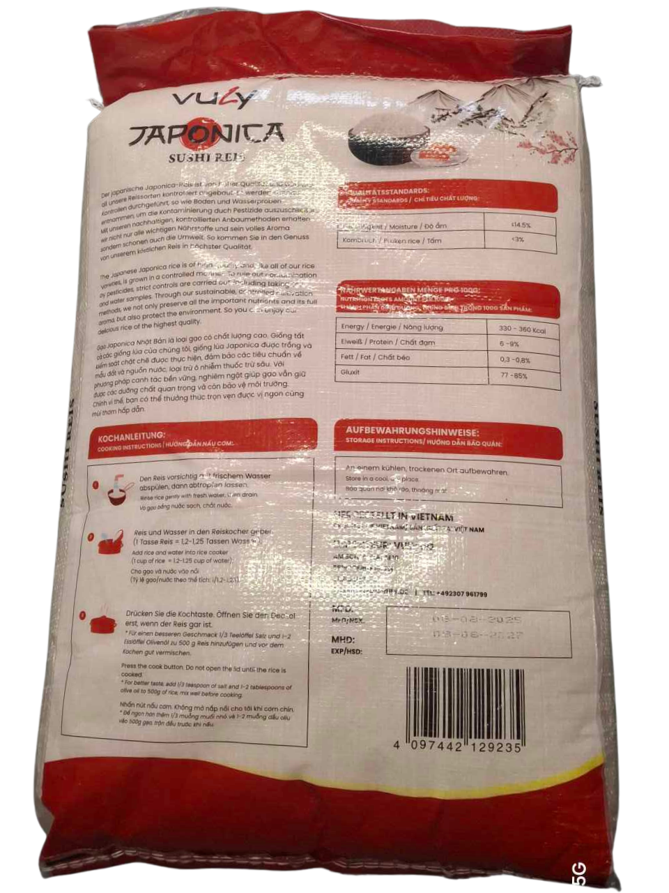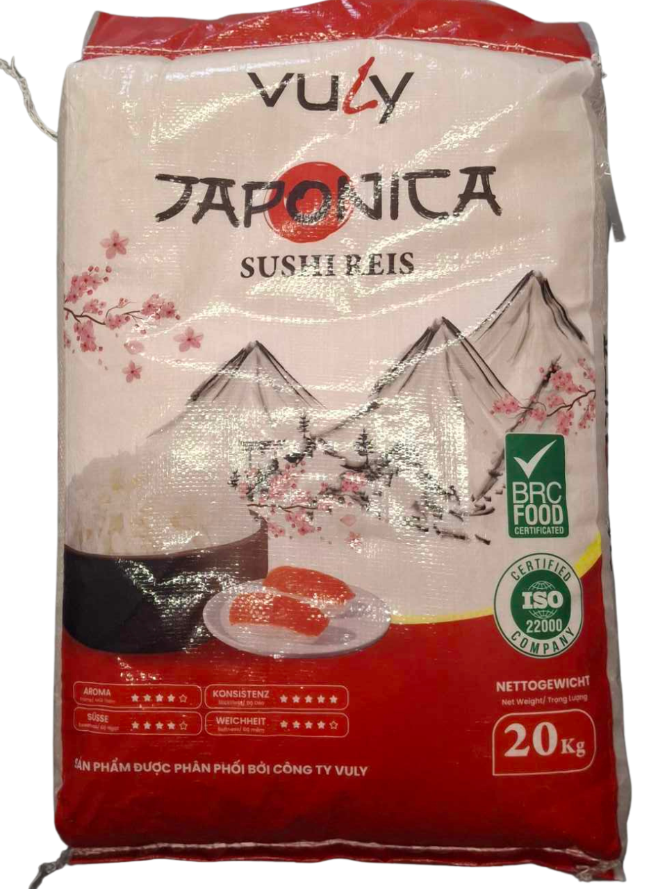 VULY JAPONICA là gạo Nhật hạt tròn cao cấp, dẻo dính, thơm nhẹ, vị ngọt thanh, chuyên dùng làm sushi và các món cơm Nhật.